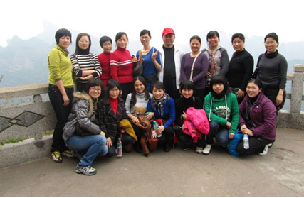 參加活動(dòng)的女職工們在南華寺門前合影。