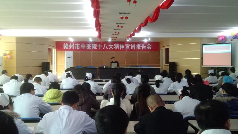 為進一步貫徹落實黨的十八大精神,2013年1月25日下午,我院邀請贛州市委黨校劉笑添教授來到我院六樓會議廳進行宣講。醫院領導、全體黨員干部及醫護人員參加了宣講會。