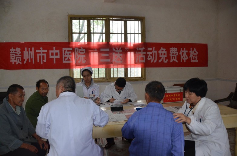 11月12日,贛州市中醫(yī)院組織醫(yī)務(wù)人員來(lái)到“三送”幫扶點(diǎn)―信豐縣崇仙鄉(xiāng),為當(dāng)?shù)鼐蠢显旱?2名孤寡老人進(jìn)行免費(fèi)健康體檢,建立健康檔案,并贈(zèng)送了價(jià)值2000元的常用藥品。體檢現(xiàn)場(chǎng),醫(yī)務(wù)人員詳細(xì)詢問(wèn)他們的身體狀況,認(rèn)真細(xì)致地為每一位老人做了內(nèi)科、外科、五官科、血壓、心電圖、血常規(guī)、肝腎功能等檢查,對(duì)一些常見(jiàn)疾病的預(yù)防保健、防病養(yǎng)生、合理飲食等進(jìn)行了講解,同時(shí)對(duì)老人們?nèi)绾勿B(yǎng)成良好的生活習(xí)慣給予了指導(dǎo),活動(dòng)深受老人們的歡迎,讓老人們?cè)谶@個(gè)秋末冬初感受到了“三送”溫暖。