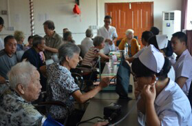 2014年9月29日上午, 在一年一度的重陽節即將到來之際,贛州市中醫院治未病科、康復科及外科相關專家一行9人來到贛州楊仙老年公寓開展“關愛老人,服務百姓”為主題的義診活動。贛州市中醫院治未病科劉瑜醫師做了秋季中醫養生健康講座,活動過程中義診人員為在場的老年人測量血壓,普及保健知識、開展慢性病康復醫療咨詢等活動。50余名老年人來到現場,與專家面對面交流健康問題。活動中發放中醫預防保健知識手冊及各類健康教育處方200余份。隨后,工作人員為老年人進行了中醫養生調養指導。(贛州市中醫院 羅和春 劉瑜 熊志泉)