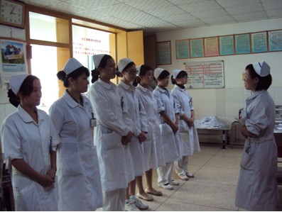 圖片解析:我院護理部在迎接等級評審活動中,逐步規范了晨會交班內容、程序、形式等,圖為護理部對晨會交班質量在質控會議中進行講評。