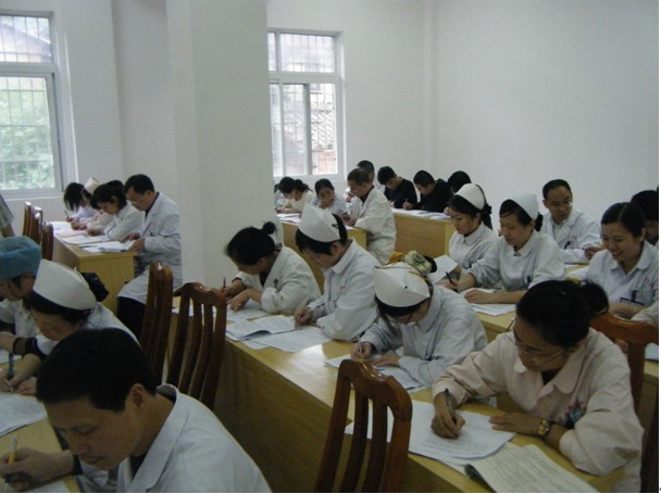 圖為全院醫務人員在進行創建“三甲”醫院知識考試