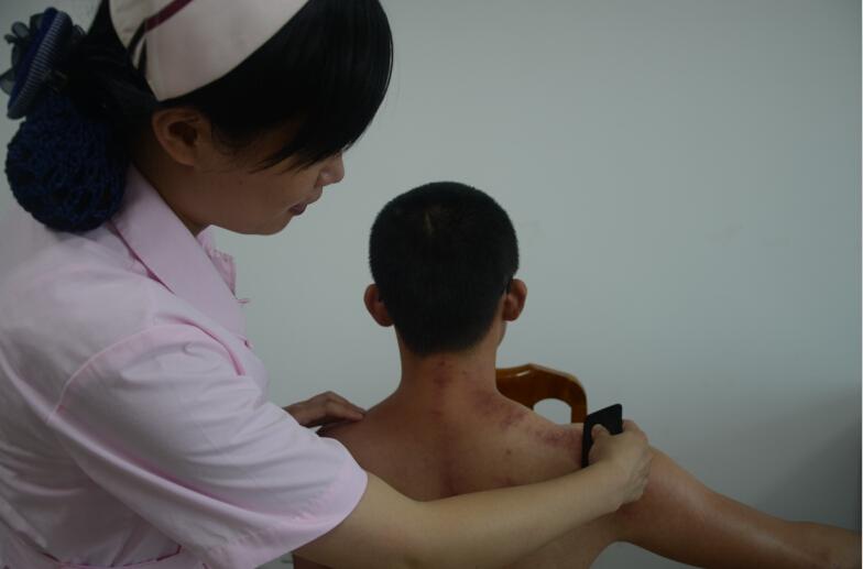 刮痧保健治療簡、便、廉、效適合醫療及家庭保健。刮痧具有調氣行血、活血化瘀、舒筋通絡、驅邪排毒等功效,已廣泛應用于內、外、婦、兒科的多種病癥及美容、保健領域。尤其適宜于疼痛性疾病、骨關節退行性疾病如頸椎病、肩周炎的康復;對于感冒發熱、咳嗽等呼吸系統病證臨床可配合拔罐應用;對于痤瘡、黃褐斑等損容性疾病可配合針灸、刺絡放血等療法;還適用于亞健康、慢性疲勞綜合征等疾病的防治。我院急診科郭菲護士長通過國家中醫藥管理局骨干人才培訓,學習北京、上海、廣州等大型中醫醫院先進手法,在全院普及推廣刮痧技術,治療肩頸痛、感冒、疲軟乏力等具有明顯療效。安全簡便、無創無痛、無副作用地祛濕排毒,讓刮痧成為夏季保健很好的選擇。