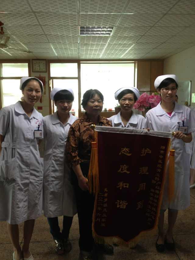 自從開展優質護理服務工作以來,全科護理人員優質、高效、貼心的護理工作得到了患者及家屬的贊譽。304床的羅銀鳳及家屬為護理人員送上“護理周到 態度和諧”錦旗,離院時羅奶奶眼眶泛著淚花,雙手緊握護理人員的手反復說道“謝謝你們!”327床的曾桂英送上“醫術精湛 護理有方”錦旗,在病床上的曾奶奶說:“你們就像我的親孫女一樣”。328床的肖珍梅送上“護理周到 態度和諧”錦旗,感謝全科護士的細心護理??????